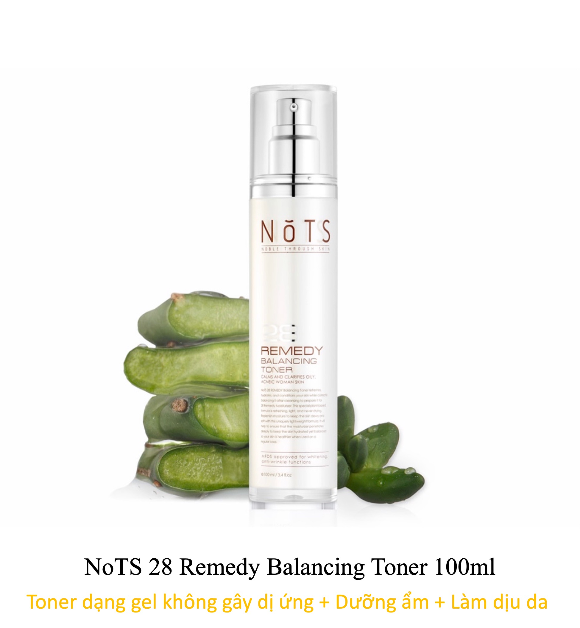 Nước hoa hồng cân bằng da NoTS 28 Remedy Balancing Toner là sản phẩm thuộc dòng 28 Remedy ứng dụng công nghệ mới với chiết xuất cây xương rồng giàu chất Aquaporin có tác dụng cung cấp độ ẩm tối ưu và làm mát da hiệu quả. NoTS 28 Remedy Balancing Toner sử dụng công thức chiết xuất từ nhiều loại thực vật tự nhiên, lý tưởng nhất khi sử dụng với làn da nhạy cảm, dễ kích ứng, nổi mụn. Nước hoa hồng giúp lỗ chân lông se khít, da sạch thoáng, mịn màng đồng thời sẵn sàng hấp thu dưỡng chất của các bước chăm sóc da tiếp theo. Đồng thời, các thành phần hoạt tính như Adenosine, Niacinamide sẽ tăng cường sức khỏe làn da, làm chậm quá trình lão hóa, ngăn ngừa nếp nhăn, duy trì làn da sáng khỏe, mịn màng đầy sức sống. Thành phần chính