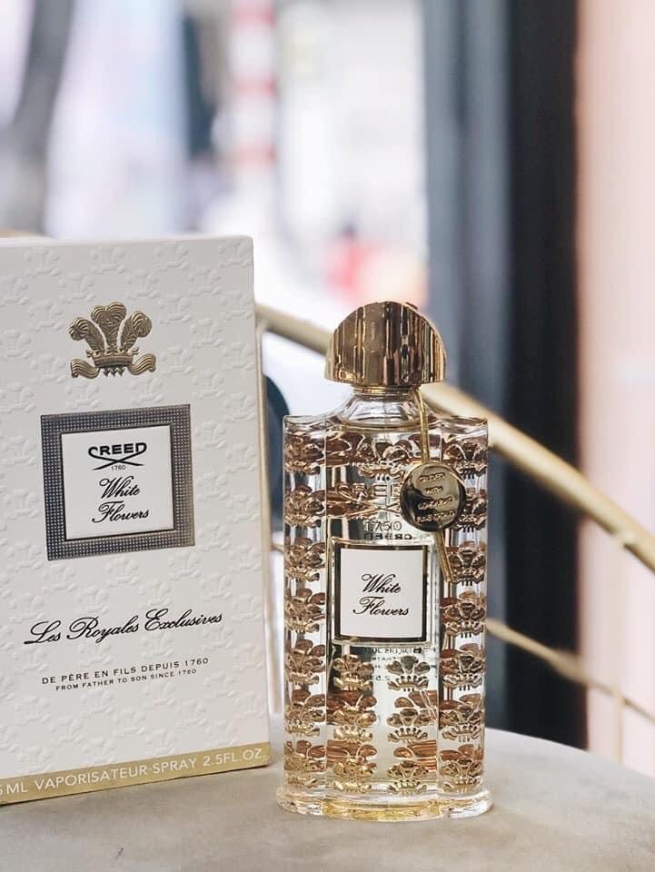 Creed White Flowers là mẫu nước hoa trong bộ sưu tập Exclusives của thương hiệu Creed, được tạo ra nhân dịp kỷ niệm 250 thành lập thương hiệu. Creed White Flowers được lấy cảm hứng bằng hình ảnh thiên đường từ những thế giới vĩnh cửu bên kia những đám mây, hương thơm say đắm toát lên vẻ tươi sáng của những bông hoa trắng tươi tắn, ngây thơ, năng động nhưng vẫn rất quyến rũ. Creed White Flowers là chai nước hoa được xem là đắt giá và rất đáng tiền của nhà hương CREED. Được mạ vàng 10K óng ánh quanh chai cực kì đẳng cấp !