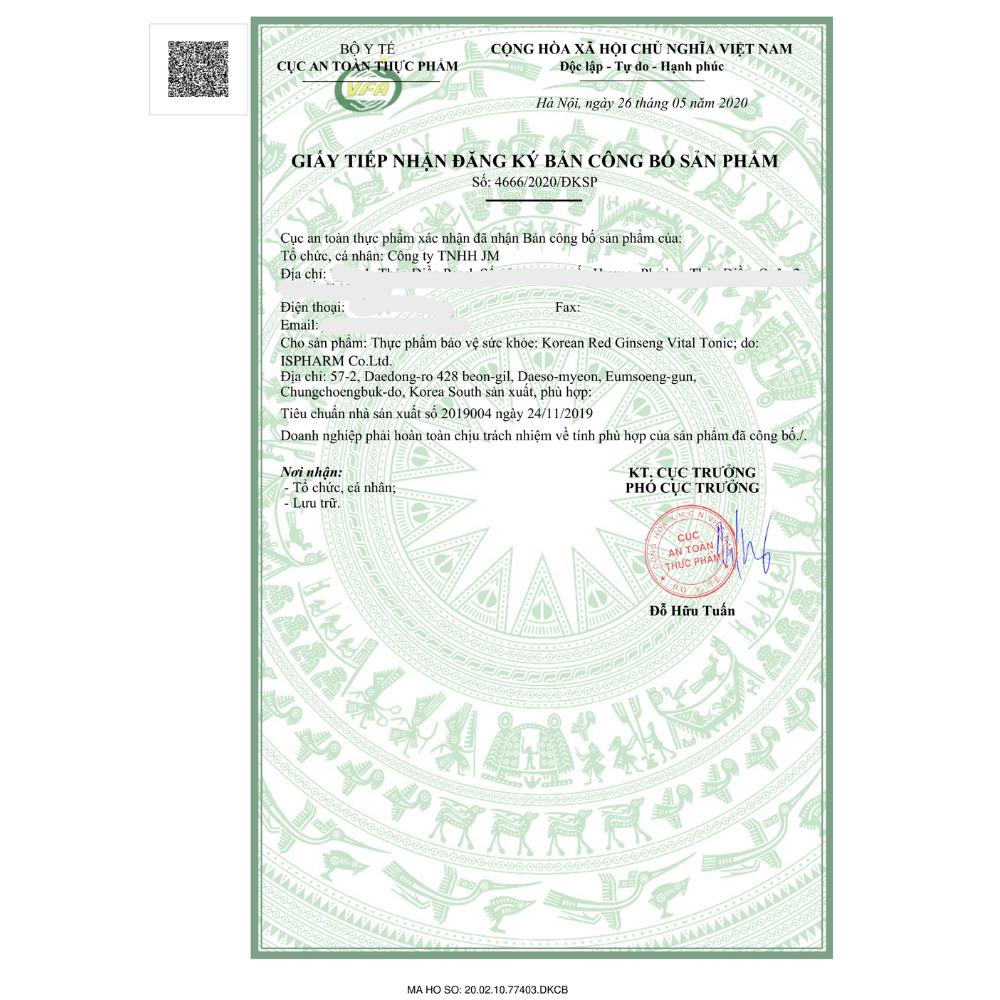 - Tên sản phẩm: Nước Hồng Sâm Hàn Quốc Hỗ Trợ Sức Khỏe KGC Vital Tonic (Hwal Gi Ruk) (20ml x 10)