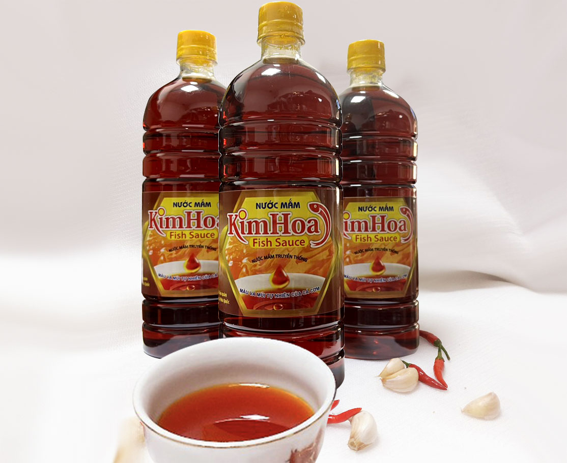 NƯỚC MẮM KIM HOA 15 ĐỘ ĐẠM LÀ NƯỚC MẮM CÁ CƠM ĐƯỢC Ủ CHƯỢP TRUYỀN THỐNG CÓ ĐỘ ĐẠM VÀ MÀU SẮC HOÀN HOÀN TỰ NHIÊN, MÙI THƠM NHẸ, CÓ SỬ DỤNG CHẤT ĐIỀU VỊ TẠO VỊ DỊU NGỌT