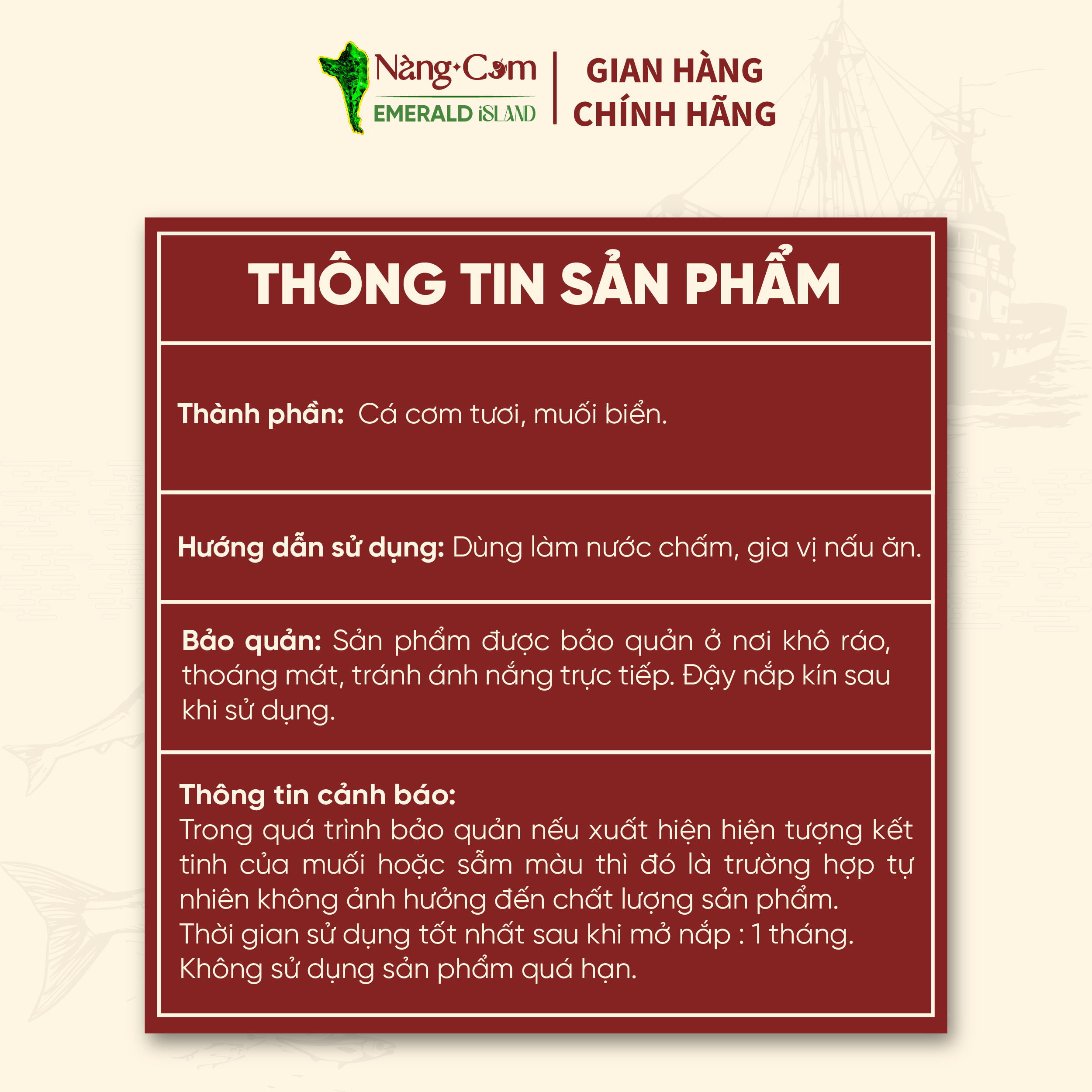THÔNG TIN NƯỚC MẮM CÁ CƠM NHẤT HẢO Nước mắm cá cơm NHẤT HẢO được chế biến từ thành phần chính là nước mắm cốt cá cơm. Cá cơm được đánh bắt ở vùng biển Phan