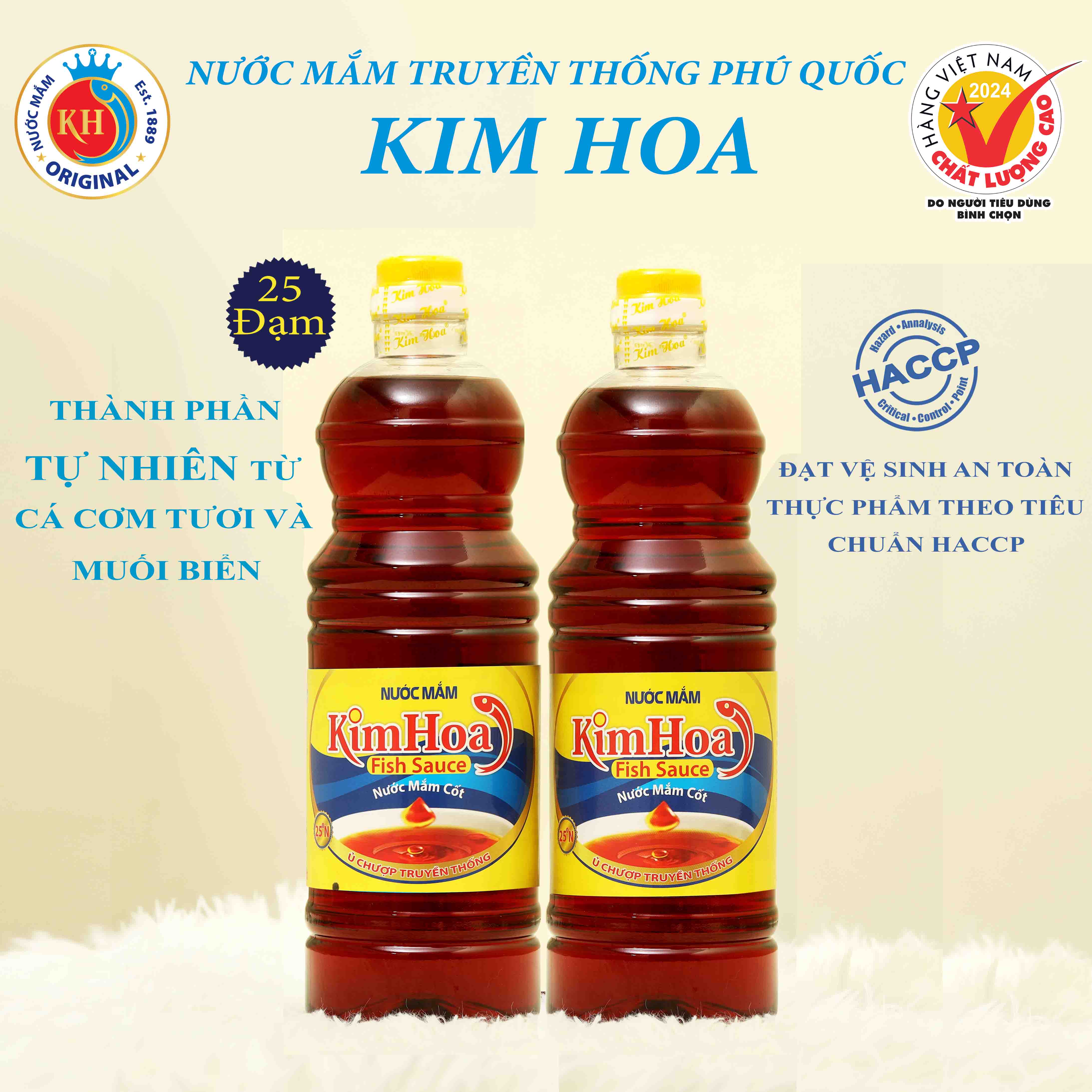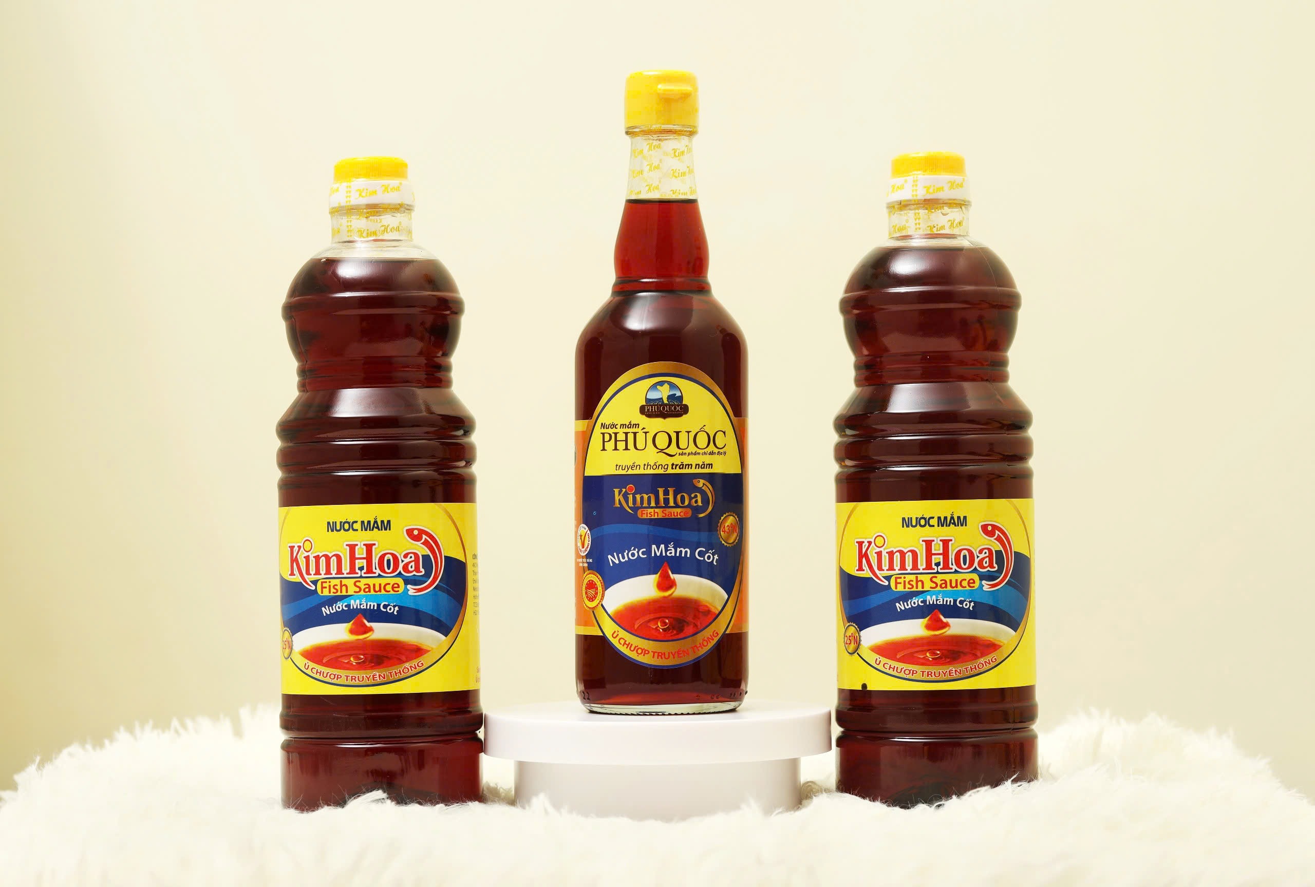 Khác với các loại nước mắm pha chế công nghiệp có sử dụng nhiều chất điều vị và phẩm màu, Nước Mắm Kim Hoa được làm 100% từ Cá Cơm tại vùng đảo Phú Quốc - là loại cá cơm giàu đạm, tươi ngon. Cá cơm sau khi được đánh bắt lên sẽ được ướp ngay trên tàu theo tỷ lệ 3 cá 1 muối, khi thuyền cập bến cá được đưa lên thùng, kiểm tra độ mặn và tiến hành gài nén - ủ chượp trong thùng gỗ đặc trưng. Quá trình này bắt buộc phải từ 12 tháng trở lên, để cá được thuỷ phân hoàn toàn, khi đó nước mắm được kéo rút ra sẽ có màu cánh gián đặc trưng, hương vị đậm đà và cái hậu ngọt của đạm cá được lắng đọng và cảm nhận rõ nơi cuống họng. Chính vì thế, nhiều khách hàng trước có thói quen sử dụng nước mắm công nghiệp khi nếm nước mắm Kim Hoa lần đầu sẽ cảm thấy mặn.