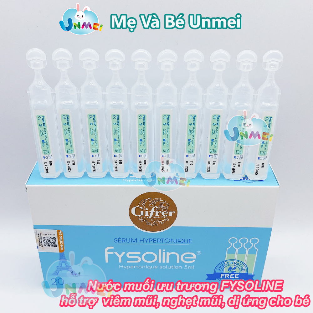 Mua tại TiktokNước muối ưu trương FYSOLINE hỗ trợ viêm mũi, nghẹt mũi, dị ứng cho bé (Hộp xanh 20 ống x 5ml) Nước muối sinh lý Pháp Kháng khuẩn hỗ trợ viêm mũi, nghẹt mũi cho bé