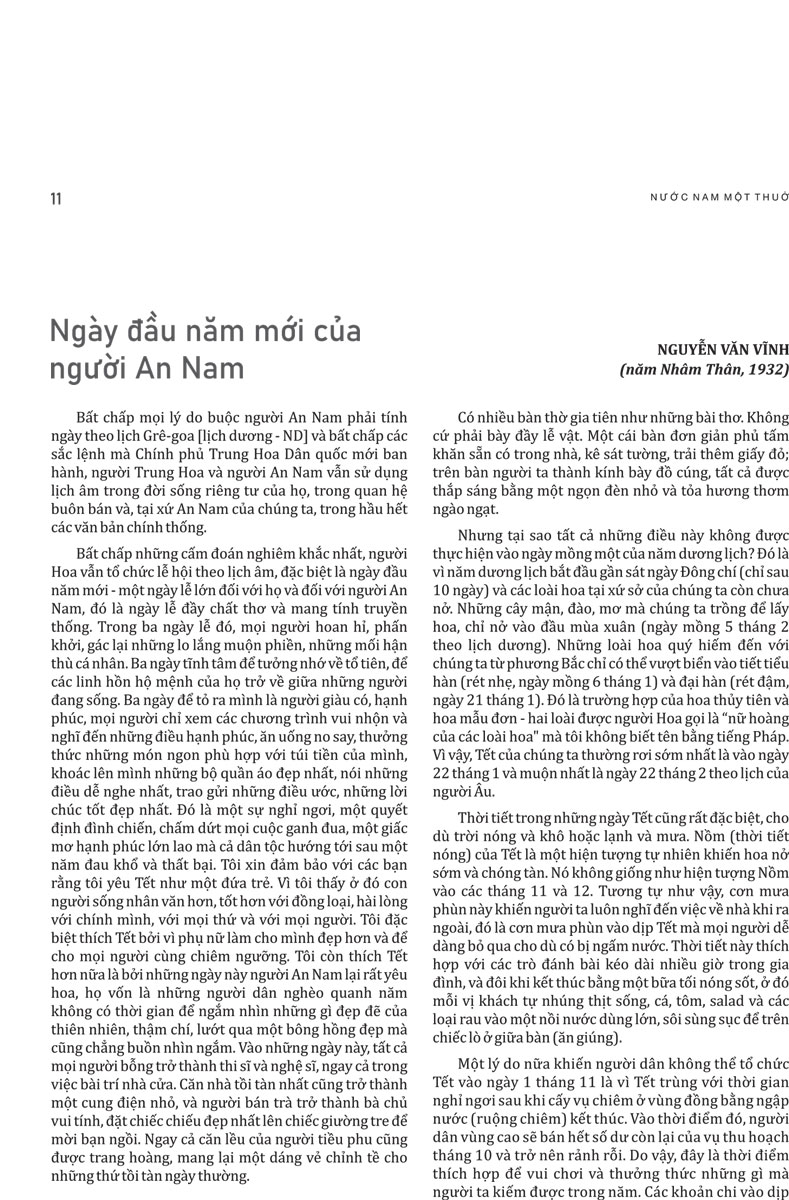 Nước Nam Một Thuở (Bìa Cứng) “Một trong những cuốn sách truyền tải trọn vẹn nhất giá trị lịch sử – văn hóa đặc trưng của đất Việt, người Việt.” “Có một thực tế đang diễn ra trong đời sống văn hóa đọc, trong xu thế nhận thức về quá khứ là xuất hiện trào lưu khơi dòng và chuyển ngữ khối tài liệu tiếng Pháp “thời thuộc địa” và xuất bản cho độc giả Việt.” – Sử gia Dương Trung Quốc Nước Nam một thuở là cuốn sách tập hợp 38 công trình nghiên cứu, bài viết tiêu biểu bằng tiếng Pháp và 60 tranh ảnh phong phú về đất nước, con người An Nam đăng trên các Tạp chí Đông Dương, Tạp chí Viễn Á, Tuần san Đông Dương, Tập san Dân Việt Nam xuất bản từ năm 1894-1948, do Trung tâm Lưu trữ quốc gia I tuyển dịch sang tiếng Việt. Ấn phẩm chủ yếu khai thác các bài tiểu luận có chất lượng ẩn trong các hồ sơ lưu trữ, trong đó có các ấn phẩm định kỳ phát hành từ năm 1948 trở về trước… Tác giả của những công trình này là các học giả, nhà khoa học, quan chức người Pháp và người Việt như: Louis Bezacier, Gustave Dumoutier, Pierre Pasquier, Cerutti, Henry Bontoux, Paul Boudet, G. Tucat, Ngô Quý Sơn, Nguyễn Văn Vĩnh, Nguyễn Xuân Chữ… Họ đã nghiên cứu kỹ lưỡng về nhiều lĩnh vực của đời sống: văn hóa, giáo dục, du lịch, quân sự, y tế, ngành nghề truyền thống… Các bài viết được lựa chọn và sắp xếp, hệ thống hóa theo chủ đề và trình tự thời gian. Mỗi bài viết đều có hình ảnh minh họa, ghi rõ tác giả, ký hiệu tra tìm, niên đại. Đối với những bài viết không có hình ảnh, Ban Biên soạn đã sưu tầm, bổ sung hình ảnh đồng thời ghi rõ nguồn dẫn để cuốn sách thêm phần sinh động. Đối với tên phố và đường ở Hà Nội và Sài Gòn, chúng tôi giữ nguyên tên gốc tiếng Pháp và bổ sung tên gọi tương đương hiện nay. Trong quá trình thực hiện, nhóm biên dịch đã gặp không ít khó khăn. Một số bài dịch từ chữ Hán, chữ Nôm, vốn có nhiều khái niệm trừu tượng, khó hiểu cũng như không có câu, từ tương đương trong tiếng Pháp; tác giả đồng thời là người dịch Hán-Nôm chỉ chuyển ý tóm lược, chẳng hạn như bài “Thi Hương” hay bài “Câu đối”. Thêm vào đó, một số địa danh hay tên người bị tác giả người Pháp viết sai, hoặc không dấu (tiếng Việt) gây nhiều khó khăn cho người dịch. Vẫn trong một số bài dịch từ chữ Hán, chữ Nôm, có nhiều sử tích và sự kiện lịch sử quá xa thời đại chúng ta hiện nay. Chẳng hạn, các sự kiện lịch sử, chiến tranh giữa các triều đại của Trung Hoa thể hiện trong các đề thi và bài làm của thí sinh “thi Hương” mà tác giả người Pháp đồng thời là người dịch không chú thích rõ ràng khiến người dịch từ tiếng Pháp sang tiếng Việt (qua hai lần chuyển ngữ) rất khó để xác minh đúng hay sai sự kiện. Trong tất cả các trường hợp trên đây, người dịch cũng như người hiệu đính, biên tập đã phân tích từng trường hợp trong bài viết để chấp thuận các giải pháp chuyển ngữ (có thể): chuyển ý, chuyển câu hoặc dịch từng từ sao cho sát ý, người đọc có thể chấp nhận được và dễ hiểu. Nước Nam một thuở thuộc Tủ sách Lịch sử-Văn hóa, nằm trong dự án hợp tác giữa Omega Plus và Trung tâm Lưu trữ Quốc gia 1.