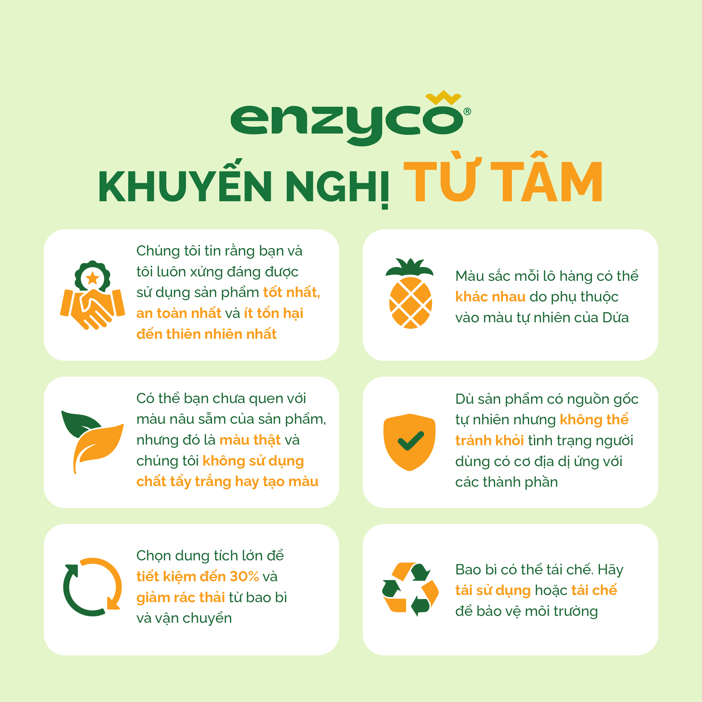- Rửa sạch với nước sạch một lần nữa. Hạn sử dụng: 24 tháng từ ngày sản xuất / 6 tháng sau khi mở nắp. Cam kết từ Enzyco: