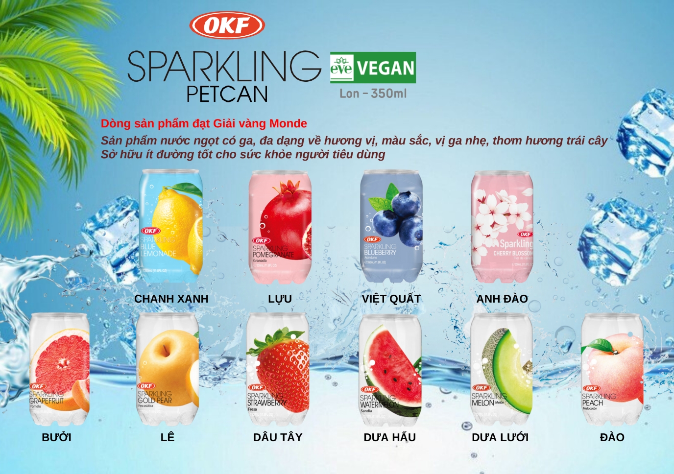 Tên sản phẩm: Nước ngọt OKF sparkling vị dưa lưới - Đây là sản phẩm của Hàn Quốc. - Nước có ga hương dưa chứa nước ép dưa rất lý tưởng để giải khát và