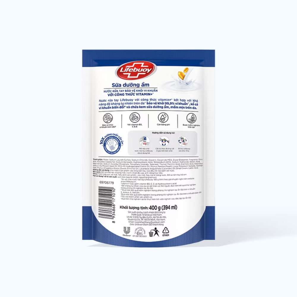 �_ BAO BÌ THAY ĐỔI THEO TỪNG ĐỢT NHẬP HÀNG - Dòng sản phẩm Lifebuoy giúp bảo vệ khỏi 99.9% vi khuẩn - Ion Bạc+ cùng tinh chất sữa giúp duy trì độ ẩm và