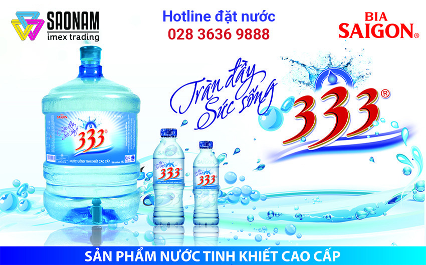Nước uống tinh khiết 333 Là sản phẩm của Công ty CP Bia Nước Giải Khát Sài Gòn - Tây Đô sản xuất trên dây chuyền thiết bị công nghệ cao được nhập khẩu từ Mỹ, Canada.   Nước uống tinh khiết 333 - loại 350ml - thùng 24 chai : giá bán lẻ 99.000đ/thùng Nước uống tinh khiết 333 - loại 500ml - thùng 24 chai : giá bán lẻ 119.000đ/thùng Nước uống tinh khiết 333 - bình 19 lít : giá bán lẻ 40.000đ/bình Nước uống tinh khiết Sài Gòn Water - bình 19 lít : giá bán lẻ 38.000đ/bình   Nước uống tinh khiết 333 Được sản xuất theo quy trình quản lý chất lượng, an toàn thực phẩm theo tiêu chuẩn quốc tế ISO 9001-2008, ISO 22000-2005, ISO 17025, ISO 14000 và quy chế quản lý chất lượng theo tiêu chuẩn TDBECO cho sản phẩm Bia, Nước tinh khiết, nước giải khát.   Nước uống tinh khiết 333 Hoàn toàn tự nhiên, không chứa các loại khoáng chất nhân tạo nên phù hợp với tất cả đối tượng người sử dụng, không lo ngại mất cân bằng khoáng trong cơ thể hoặc gia tăng nguy cơ sỏi thận.   Nhà Phân Phối Nước Tinh Khiết 333 -Sản phẩm của Công ty CP Bia - Nước Giải Khát Sài Gòn Tây Đô Công ty CP Xuất Nhập Khẩu Thương Mại Sao Nam M: xnksaonam@ - Website: Liên hệ Phòng kinh doanh: Khu vực Tp.HCM: Ms Trâm Anh – 0387.159.163 ; Ms Huỳnh Như – 0366.323.416 Khu vực Bà Rịa-Vũng Tàu: Ms Khanh – 0906.610.482 ; Mr Hoà – 0888.890.022 Khu vực Lâm Đồng: Mr Tài - 09.6638.6238   TUYỂN ĐẠI LÝ PHÂN PHỐI SỈ - LIÊN HỆ: 0987-832-157