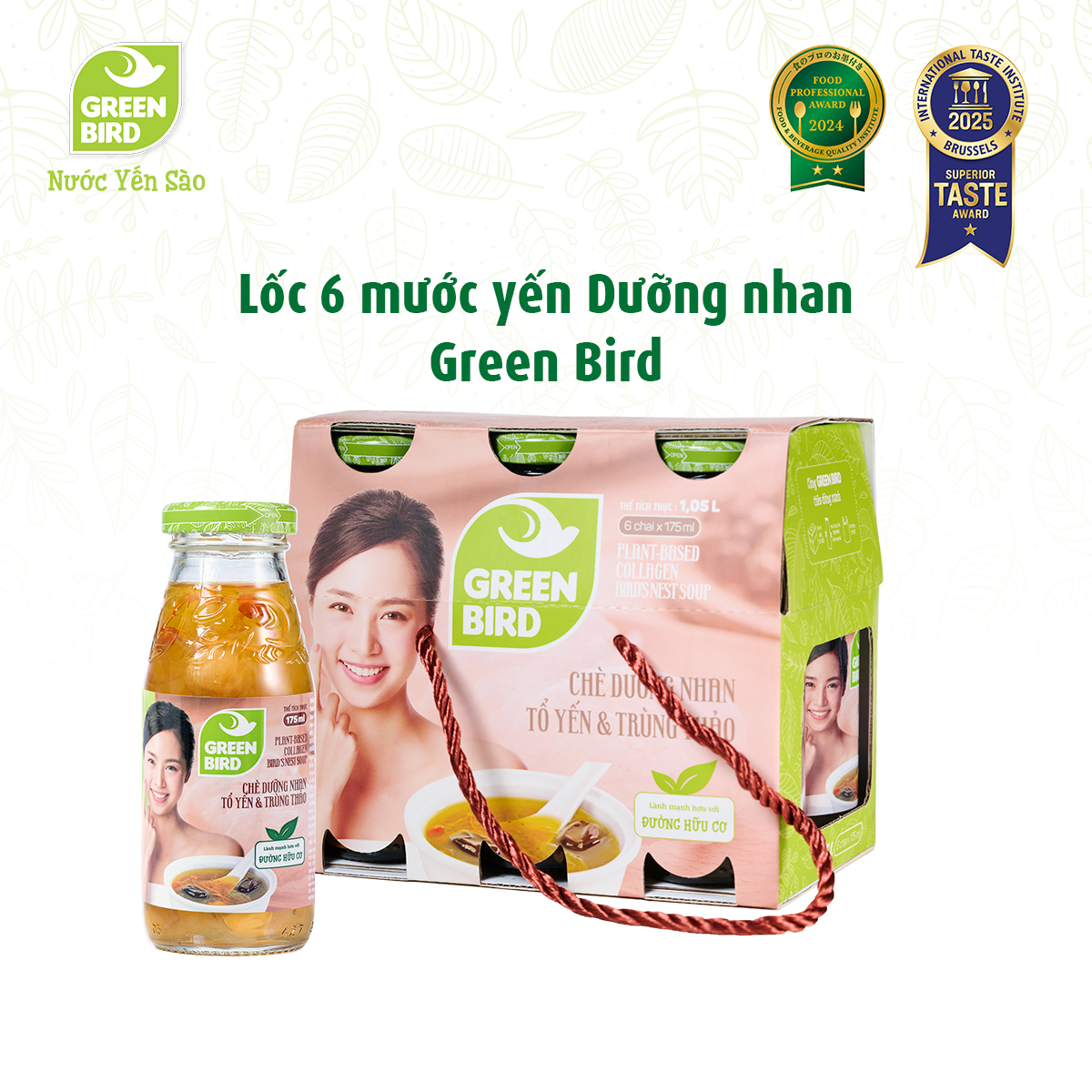 ✨Nước Yến Dưỡng Nhan Tổ Yến Và Trùng Thảo Green Bird Giải Khát Thanh Nhẹ Chai 185ml