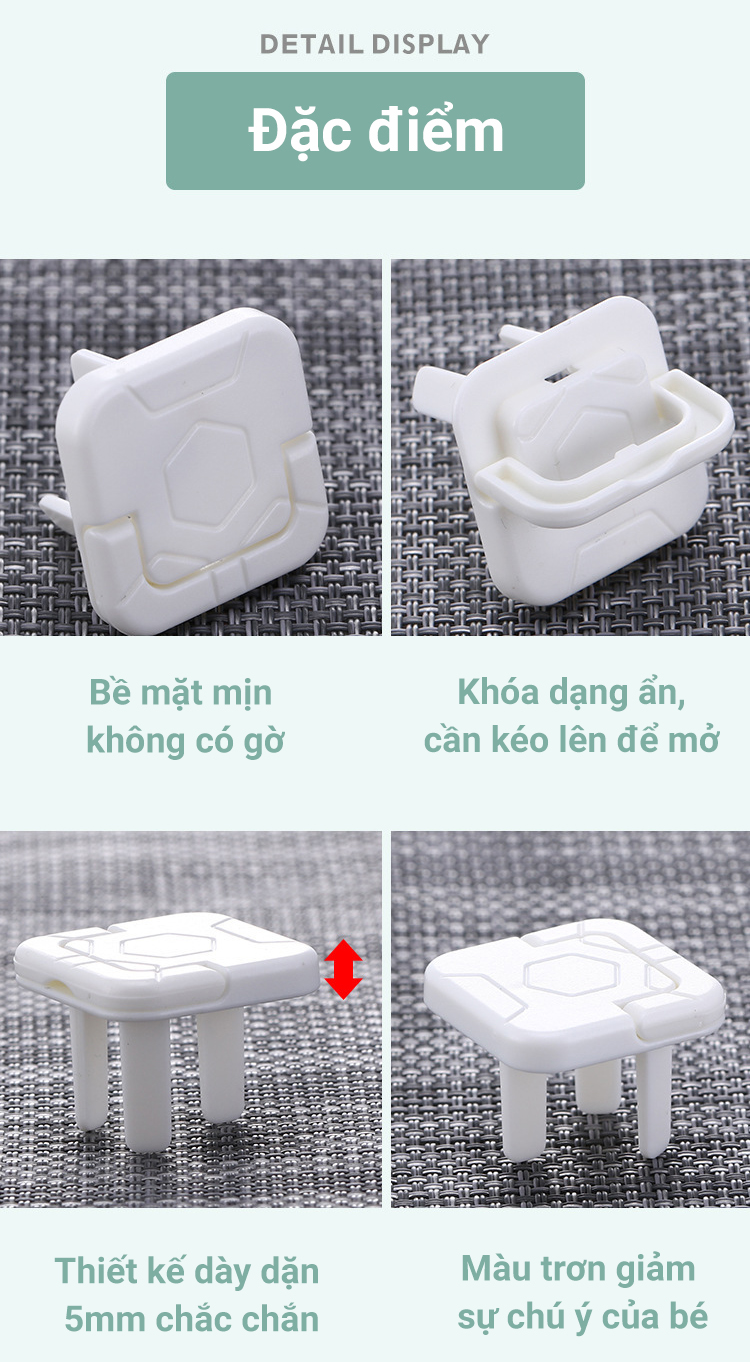 - Thiết kế bịt ổ điện trơn 1 màu giúp giảm sự chú ý của trẻ nhỏ Lưu ý: