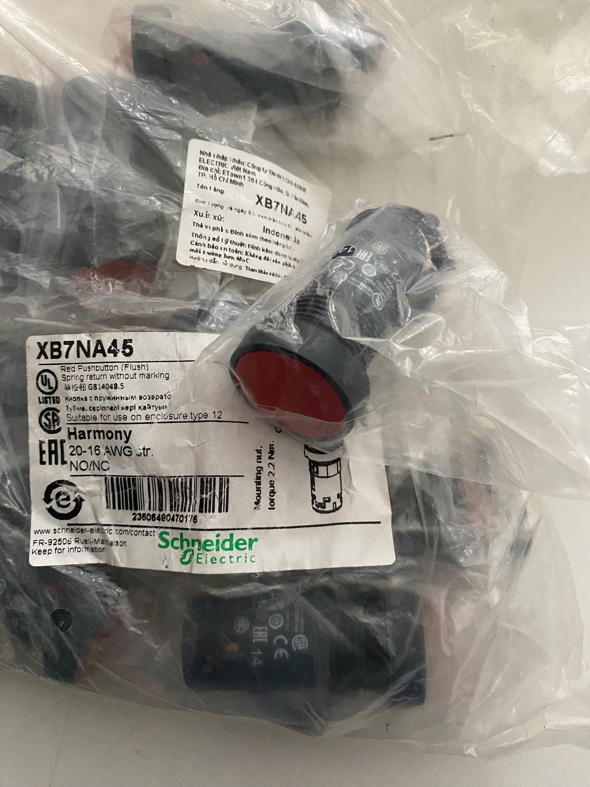 ✨Nút nhấn nhả Schneider XB7NA45, 22mm, màu đỏ, 1NO +1NC