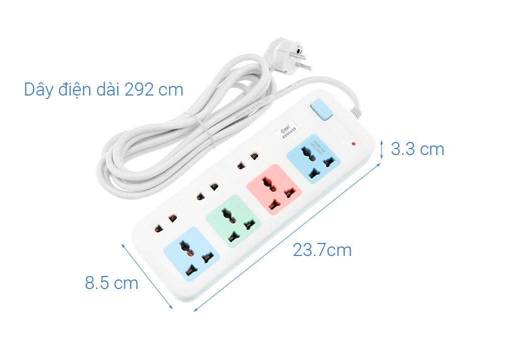 Dây điện có chiều dài thực tế là 2.92m, hãng Comet tính luôn dây đồng đi vào ổ cắm nên tổng chiều dài dây điện là 3m, tiện lợi cho với các ổ cắm điện xa.