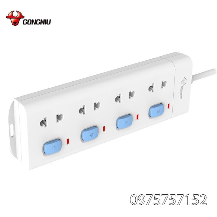 Ổ Cắm Điện Gongniu Đa Năng 4 Ổ 1 Công Tắc 2500W – Trắng – V1040 - Chính Hãng