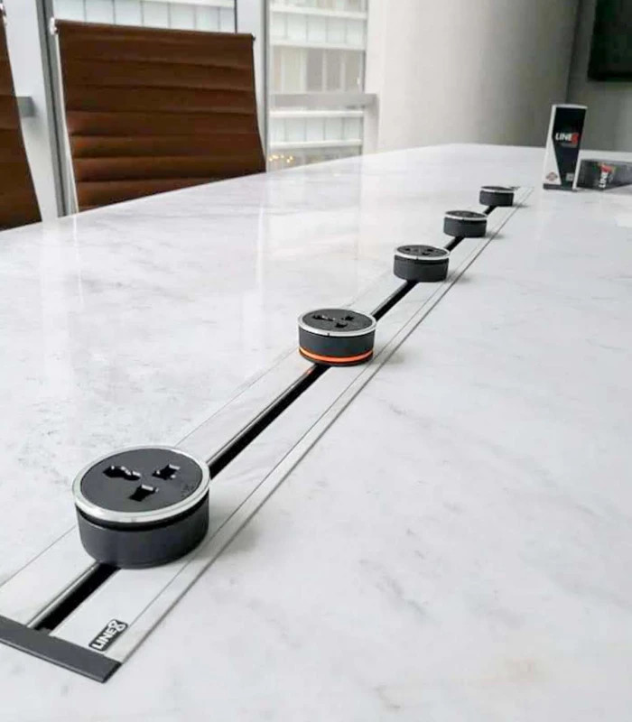 - Ổ cắm và các phụ kiện có thể lắp vào và tháo ra một cách tự do ở bất cứ đâu dọc theo thanh ray Line8