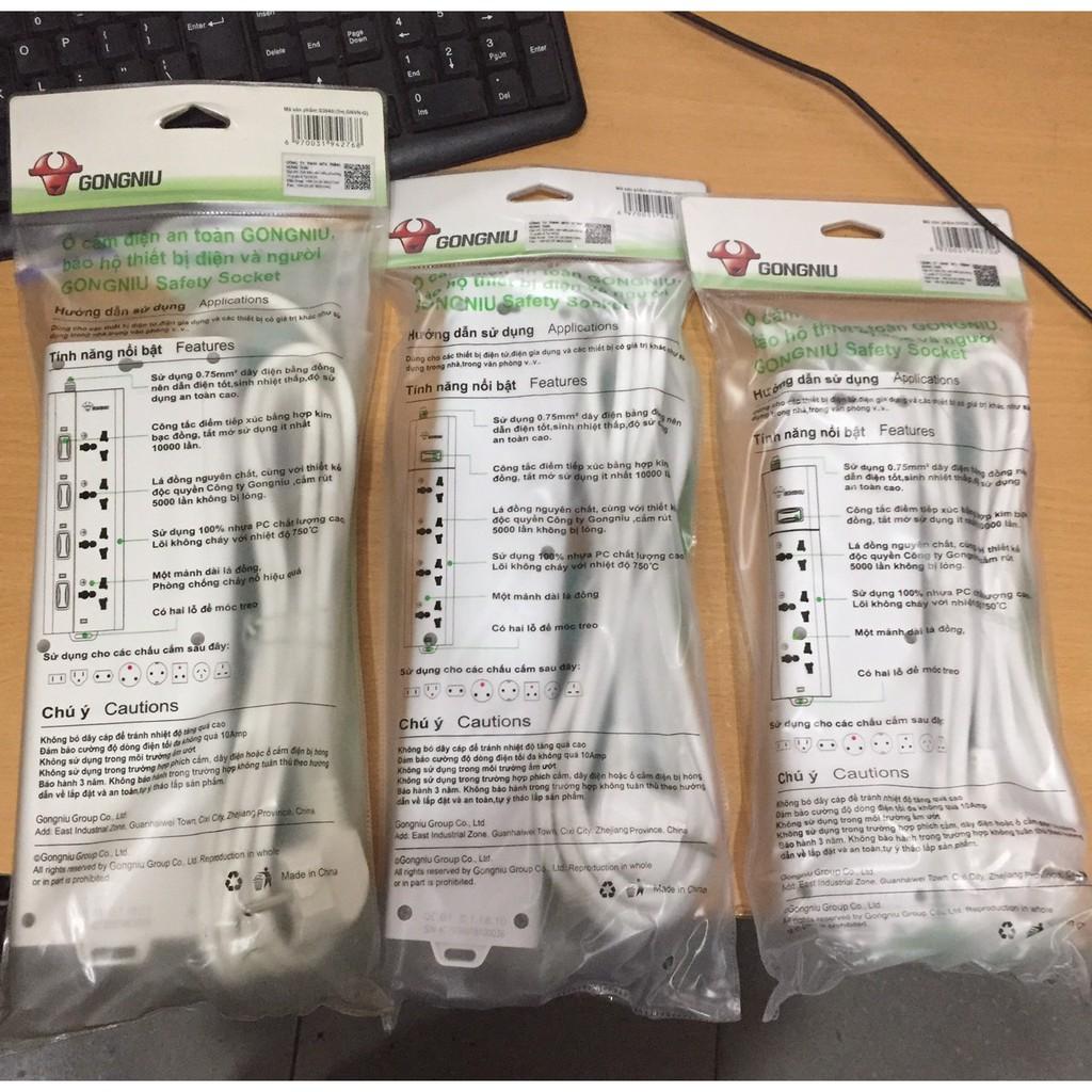 Ổ Cắm Điện Gongniu 3 Ổ Đa Năng + 2 USB 1 công tắc 2500W/10A Dây Dài 1.8m – N103U - Chính Hãng