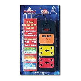 Ổ cắm 3 ổ đa năng + 2 ổ cắm USB cách điện bền đẹp - Chịu nhiệt, chống cháy: 750 độ C - Chiều dài dây điện: 1.8 mét - Chân tiếp xúc với