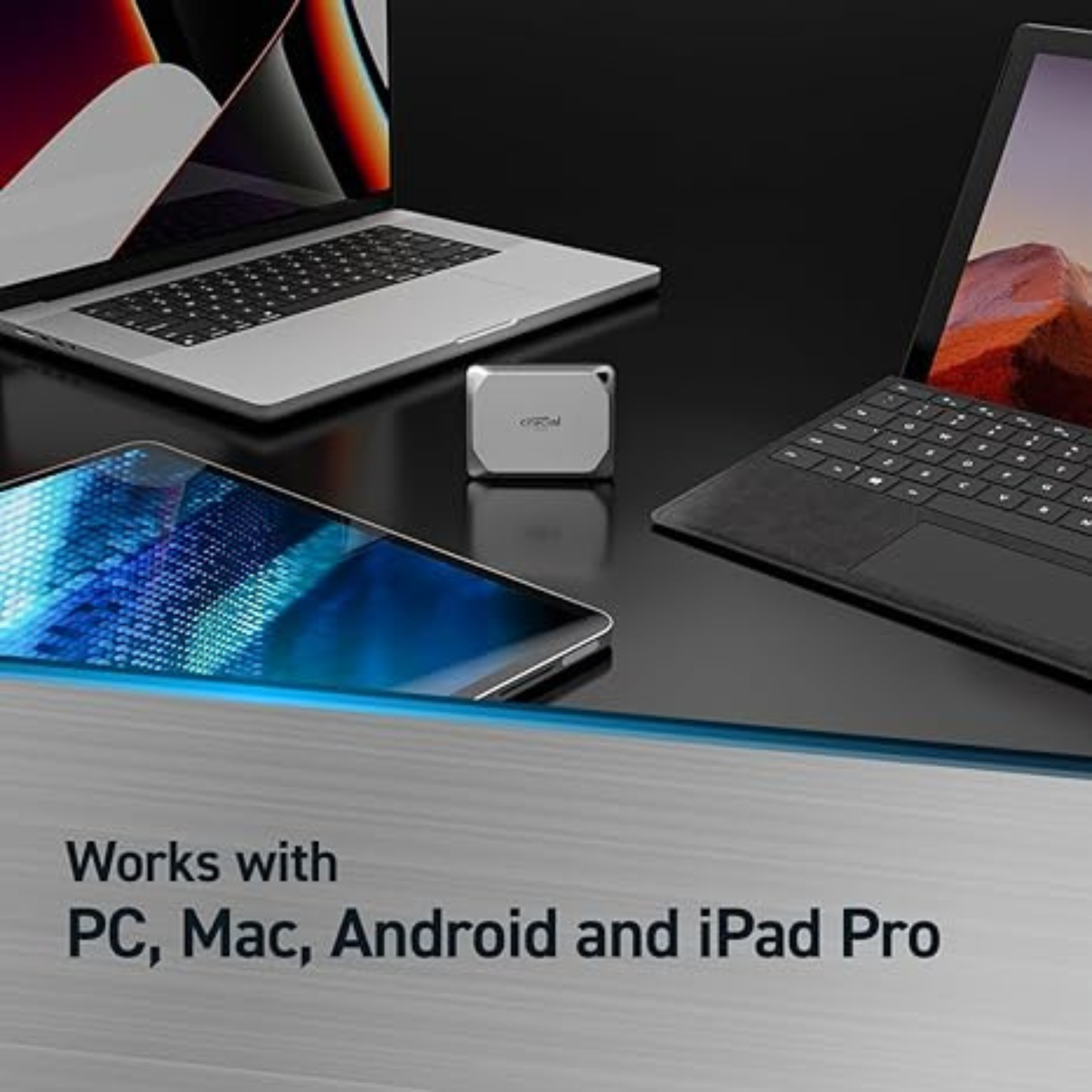 Nhà sản xuất Crucial Model CT1000X9PROMACSSD9B Chuẩn giao tiếp USB 3.2 Gen 2 Dung lượng 1TB Tốc độ đọc 1050 MB/s Tốc dộ ghi 1050 MB/s Độ bền Chống sốc, rung và rơi lên đến