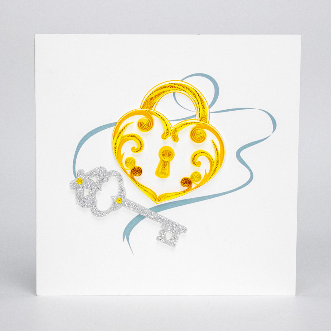 ✨Ổ khóa và chìa khóa tình yêu - Thiệp giấy xoắn tối giản 15 x 15 cm - Thiệp chúc mừng tình yêu