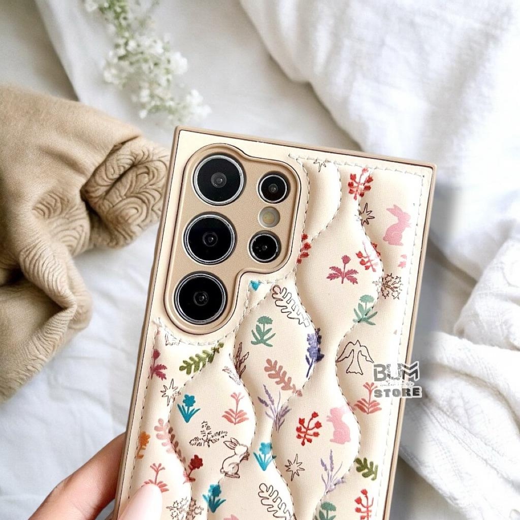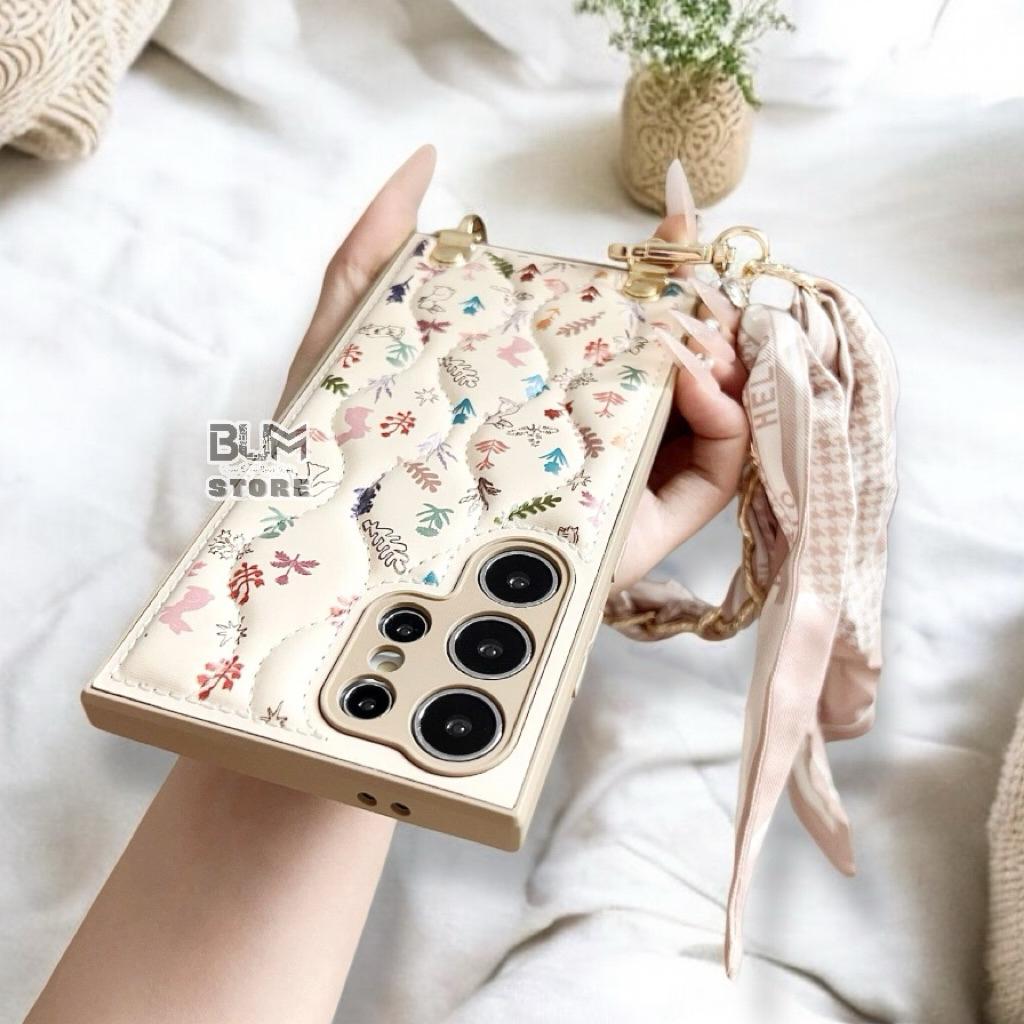 Ốp Lưng TPU Chỉ Nổi Họa Tiết Hoa Kèm Quai Khăn Lụa Sang trọng Cho Samsung S25 Ultra / S24 Ultra / S23 Ultra Chất Liệu : Nhựa TPU dẻo dày dặn Mặt lưng simili