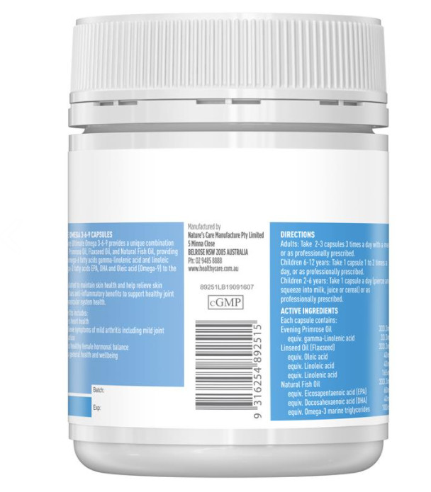 Mua tại TiktokOmega 3-6-9 Healthy Care Ultimate 1000mg Hỗ Trợ Sức Khỏe Tim Mạch Tăng Cường Trí Nhớ, Giảm Nhức Xương Khớp, Tăng Đề Kháng, Tăng Khả Năng Tập Trung, Hỗ Trợ Phụ Nữ Tiền Mãn Kinh Viên uống Omega 369 Úc là sự kết hợp giữa các thành phần Omega 3, 6 và 9 axit béo cùng dầu hạt lanh, dầu cá và tinh hoa dầu anh thảo giúp hỗ trợ sức khỏe và làn da. Omega 3-6-9 Healthy Care Ultimate 1000mg có tốt không?
