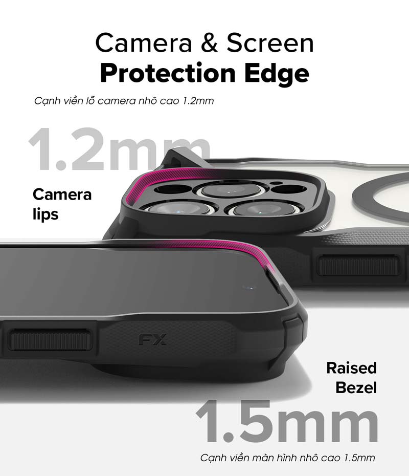 Sản phẩm ốp lưng iPhone 16 Pro Max/16 Pro của Ringke dòng Fusion X Magnetic với thiết kế chống sốc bảo vệ điện thoại của bạn cực tốt, cùng với những gờ nổi ở mặt lưng mang đến cảm giác cầm nắm vô cùng chắc chắn.