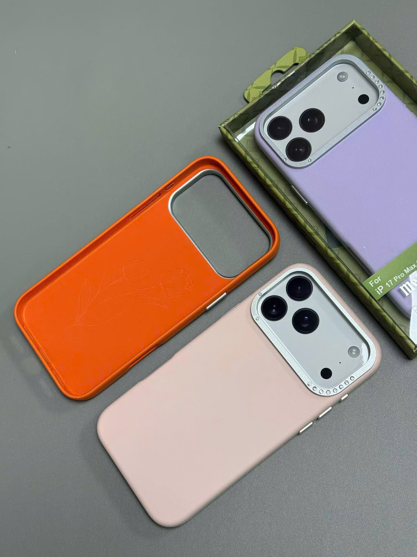 Ốp lưng da PU viền cam đá cho iPhone 17 Pro Max hiệu Memumi Diamond With Mag safe • Chất liệu da PU cao cấp, mềm mại và sang trọng khi cầm nắm. • Vòng bảo vệ camera kim loại đính đá Swarovski lấp lánh, tạo điểm nhấn tinh tế. • Bên trong ẩn họa tiết hoa tulip tinh tế, hé mở vẻ đẹp lãng mạn ở từng chi tiết. Hỗ trợ Mag Safe, sạc không dây nhanh chóng và tiện lợi.