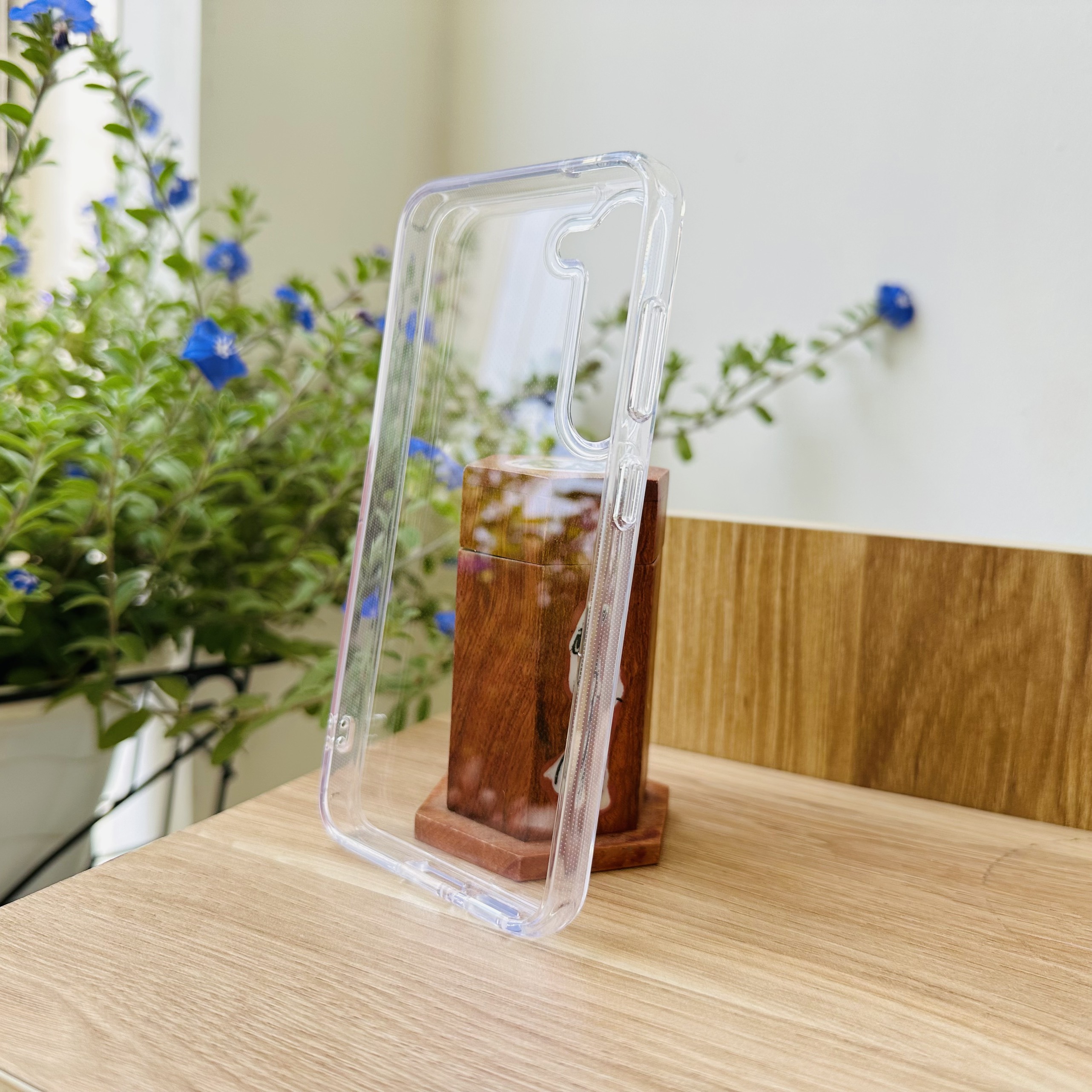 Chất liệu Mica trong suốt không ố vàng kết hợp PU mềm chống sốc hiệu quả.