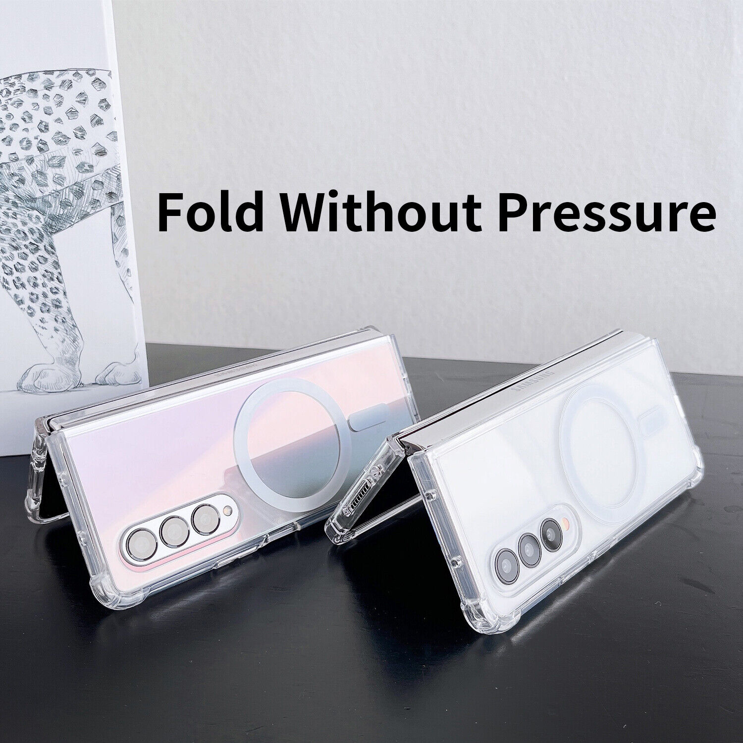 Ốp lưng chống sốc trong suốt hỗ trợ sạc Maqsafe siêu mỏng 1.5mm cho Galaxy Z Fold 4 Hiệu Likgus Maqsafe Magetic Case với Phần viền camera được làm như một khung kim loại dày thêm 0.2mm bảo vệ camera không trầy xước khi tiếp xúc.