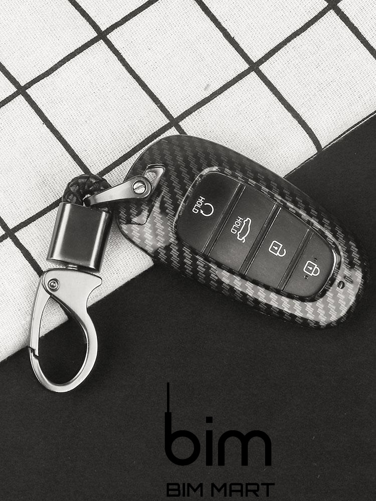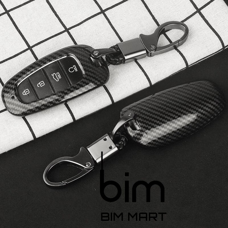 Ốp chìa khóa carbon, các bon cao cấp, bọc, bảo vệ chìa khóa kèm móc đeo inox cho xe Hyundai Santafe 2021 mẫu mới bên trong bọc cao su mềm, tránh va đập, bảo vệ