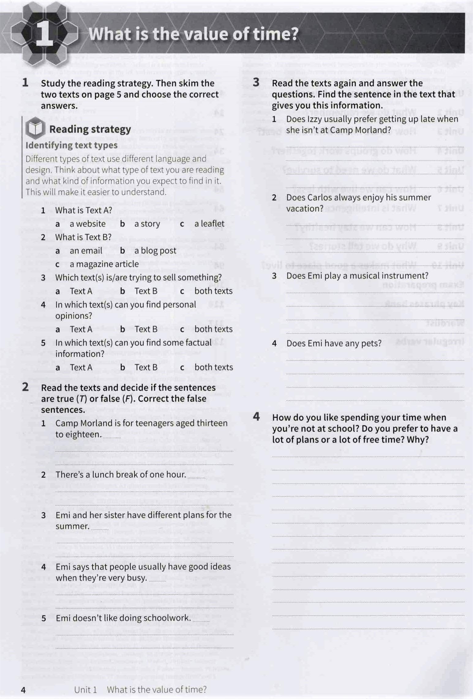 Oxford Discover 4 Student Book &Workbook Unit 1 Model Answers