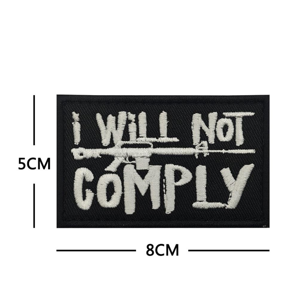 Patch "I WILL NOT COMPLY" – Biểu tượng của sự tự do và cá tính mạnh mẽ! Thiết kế táo bạo: Nền đen mạnh mẽ với dòng chữ trắng nổi bật – thể hiện tinh thần bất khuất, kiên cường. Chất liệu cao cấp: Thêu sắc nét, bền bỉ, chịu được mọi điều kiện khắc nghiệt. Dễ dàng gắn kết: Mặt sau có Velcro (dán dính), phù hợp với ba lô, áo khoác, mũ hoặc bất kỳ trang bị nào có bề mặt tương thích. Dành cho những chiến binh hiện đại: Phù hợp với quân nhân, người yêu thích tactical gear, airsoft, hoặc bất cứ ai đề cao quyền tự do cá nhân.