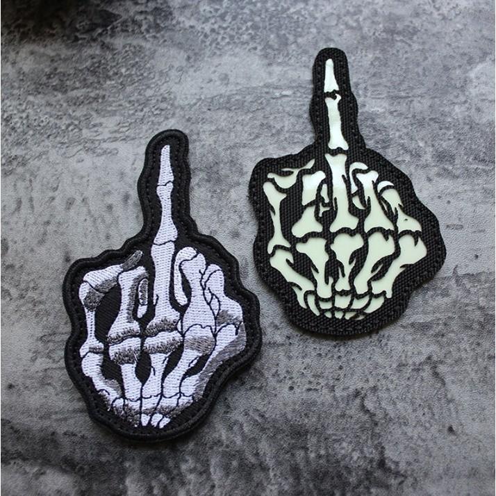 Patch_velcro ngón tay giữa dán quần áo_ba lô túi xách Dùng dán lên áo , ba lô, túi xách, nón... Có gai ở mặt sau dùng để dán trực tiếp lên những vật dụng có lớp rối ( có kèm theo lớp rối để may vào trường hợp vật dụng của bạn không có lớp này) Hàng nhập thêu cực kỳ tỉ mỉ nhé anh em Giá mềm xèo luôn ạ