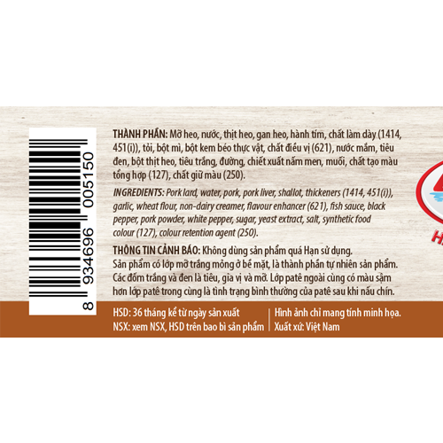 MÓN NGON THƯƠNG HIỆU - Sản phẩm: Patê Cột Đèn Hải Phòng - Thương hiệu : Halong Canfoco. - Khối lượng: Hộp 150g. ️ Sản phẩm được sản xuất hoàn toàn ở Việt Nam. CHUẨN