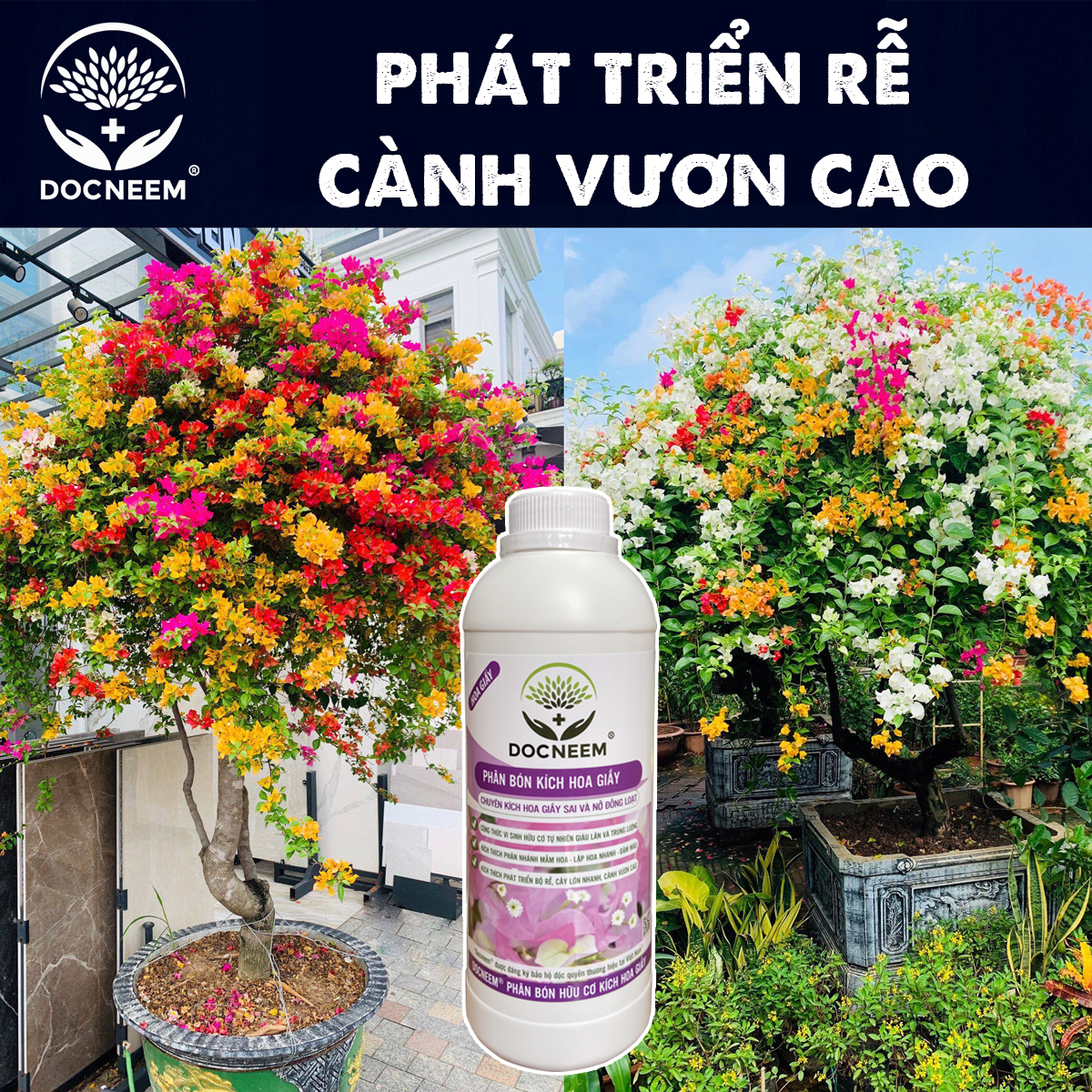 Phân bón hữu cơ kích hoa giấy Docneem PHÂN BÓN DUY NHẤT TRÊN THỊ TRƯỜNG - Giúp hoa giấy lặp hoa nhanh gấp 2 lần các dạng phân bón thông thường - Công thức chuyên
