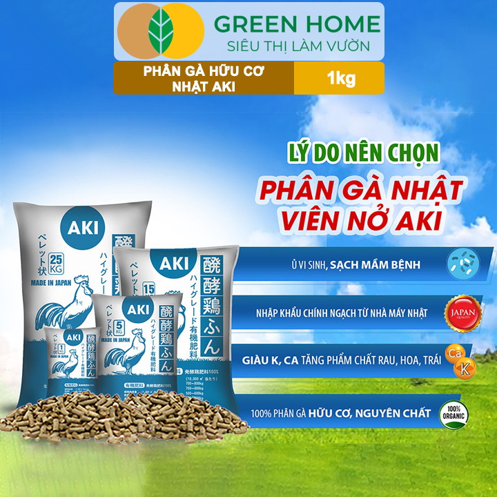 ✨Phân Gà Greenhome, Aki Sfarm, Bao 1kg, Nhập Khẩu Nhật, Viên Nén, Hữu Cơ Sinh Học Bón Rau Sạch, Cây Ăn Quả, Hoa Hồng