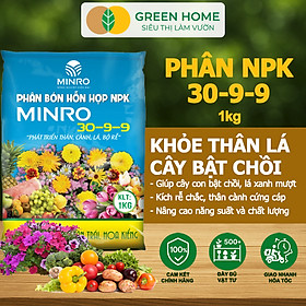 Phân NPK 30-9-9 +TE Greenhome, Minro, Bao 1Kg, Phát Triển Nhanh Thân, Cành, Lá, Bộ Rễ