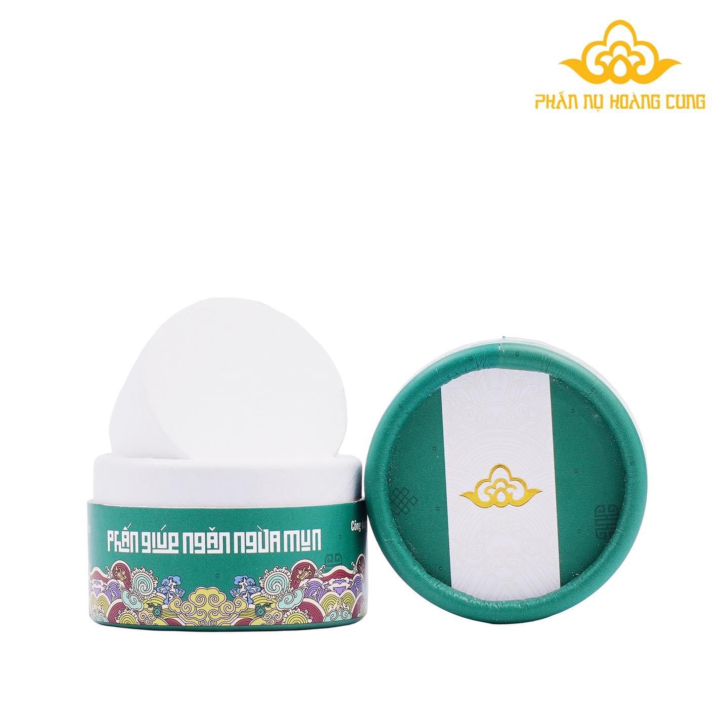 Phấn ngừa mụn Phấn Nụ Hoàng Cung   Phấn Nụ Hoàng Cung là dòng mỹ phẩm truyền thống từ thiên nhiên của Việt Nam từ thời nhà Nguyễn (năm 1945) tới nay, với nguyên liệu 100% thiên nhiên, dùng được cho mẹ bầu và da nhạy cảm   Lợi ích sau khi sử dụng phấn ngừa mụn Phấn Nụ Hoàng Cung: Sau khi sử dụng lượng nhờn được kiểm soát và điều tiết nên da bớt tiết dầu, khô thoáng hơn. Nhân mụn nhanh khô lại và rơi ra, nhờ đó mà mụn nhanh khỏi hơn. Lưu ý không cạy nặn nhân mụn để nhân tự rơi ra, tránh để lại vết thâm và viêm nhiễm khi cạy nặn. Sử dụng kết hợp Phấn nước ngừa mụn để mụn nhanh hết hơn. Thành phần: Kaolin nhẹ, nghệ chủ, cùi dừa tươi cùng thảo dược   Phấn ngừa mụn Phấn Nụ Hoàng Cung với các hạt phấn nhỏ mịn giúp thấm sâu và ngăn mụn tận gốc từ bên trong, làm khô đầu mụn và hạn chế sự phát triển trở lại của mụn.