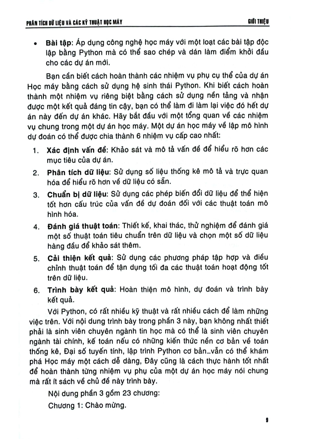 Khoa Học Dữ Liệu Với Python Sách Khoa học dữ liệu với Python được trình bày với 424 trang khổ 16 x 24 cm qua 7 chương và 1 phụ lục: Chương 1: Giới thiệu