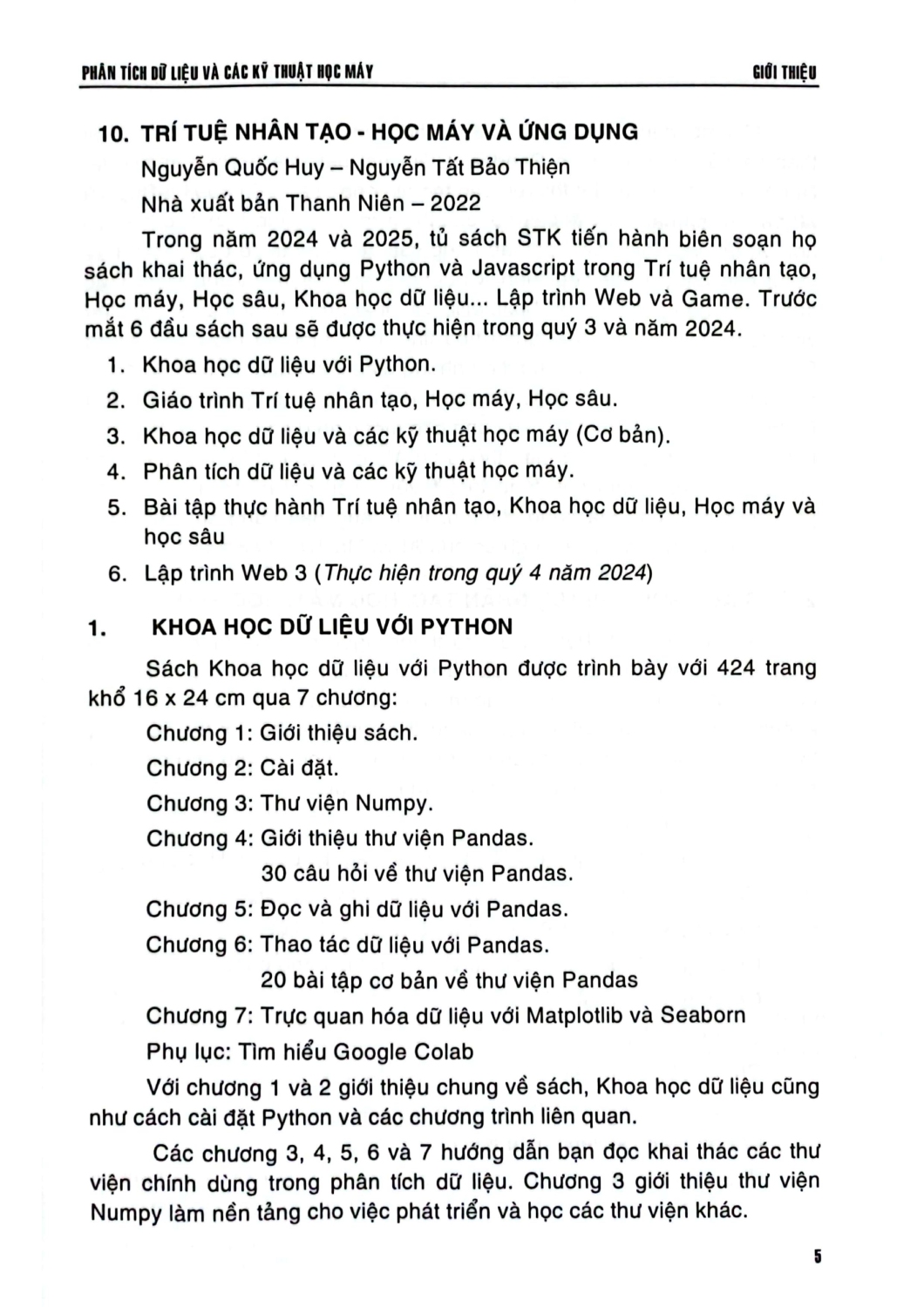 Phân Tích Dữ Liệu Và Các Kỹ Thuật Học Máy Có thể xem đây là tập tiếp theo sách KHOA HỌC DỮ LIỆU VỚI CÁC KỸ THUẬT HỌC MÁY (CƠ BẢN) ở mức