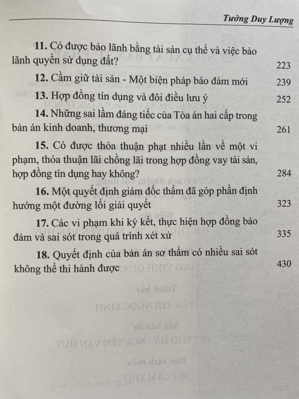 Nhằm góp phần nghiên cứu, tìm hiểu những quy định của pháp luật cũng như bản chất các vụ việc, thực tiễn giải quyết trang chấp và những thiếu sót trong quá trình giải quyết tranh chấp về dân sự-kinh tế, để ngày càng nhận thức áp dụng đúng pháp luật dân sự - kinh tế góp phần thúc đẩy giao lưu dân sự, tạo môi trường thuận lợi cho kinh doanh, thương mại, Nhà xuất bản Tư Pháp xuất bản cuốn sách " Pháp luật dân sự - kinh tế và thực tiễn xét xử ( Tập 1)" của Luật sư Tưởng Duy Lượng - nguyên Phó Chánh án Tòa án nhân dân tối cao, người có bề dày công tác nghiên cứu khoa học pháp lý, với vốn kiến thức chuyên sâu về lý luận trong lĩnh vực pháp luật dân sự- kinh tế và kinh nghiệm nhiều năm trực tiếp xét xử các vụ việc dân sự - kinh tế