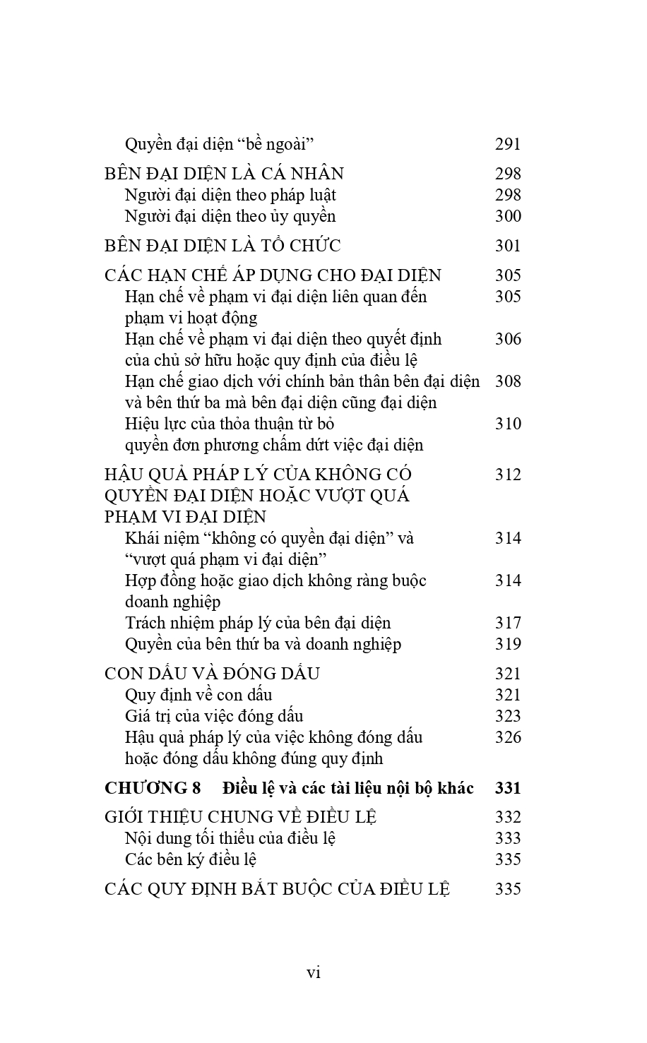 Trải dài trong hơn 1000 trang, cuốn sách phân tích các vấn đề pháp lý cơ bản liên quan đến việc thành lập, tổ chức quản lý và hoạt động của doanh nghiệp. Kết cấu của cuốn sách gồm hai mươi chương và chia làm năm phần, tập trung vào hai hình thức doanh nghiệp thông dụng nhất là công ty trách nhiệm hữu hạn (CTTNHH) và công ty cổ phần (CTCP).