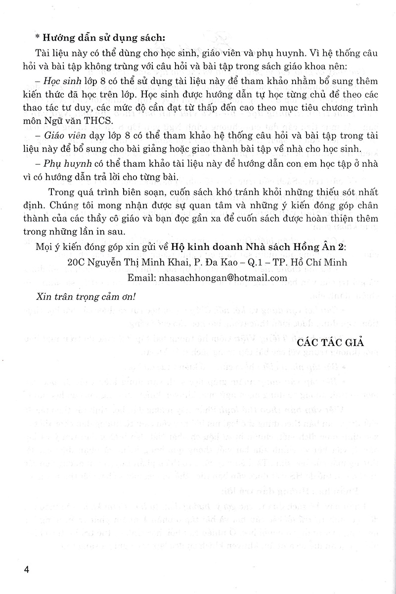 - Giáo viên dạy lớp 8 có thể tham khảo hệ thống câu hỏi và bài tập trong cuốn sách này để bổ sung cho bài giảng hoặc giao thành bài tập về nhà cho học sinh.
