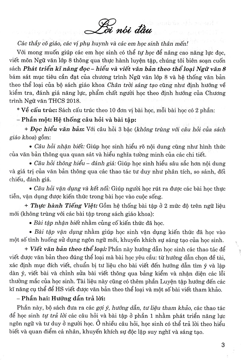 Phát Triển Kĩ Năng Đọc - Hiểu Và Viết Văn Bản Theo Thể Loại Môn Ngữ Văn 8 (Bám Sát SGK Chân Trời Sáng Tạo) Với mong muốn giúp các em học sinh có
