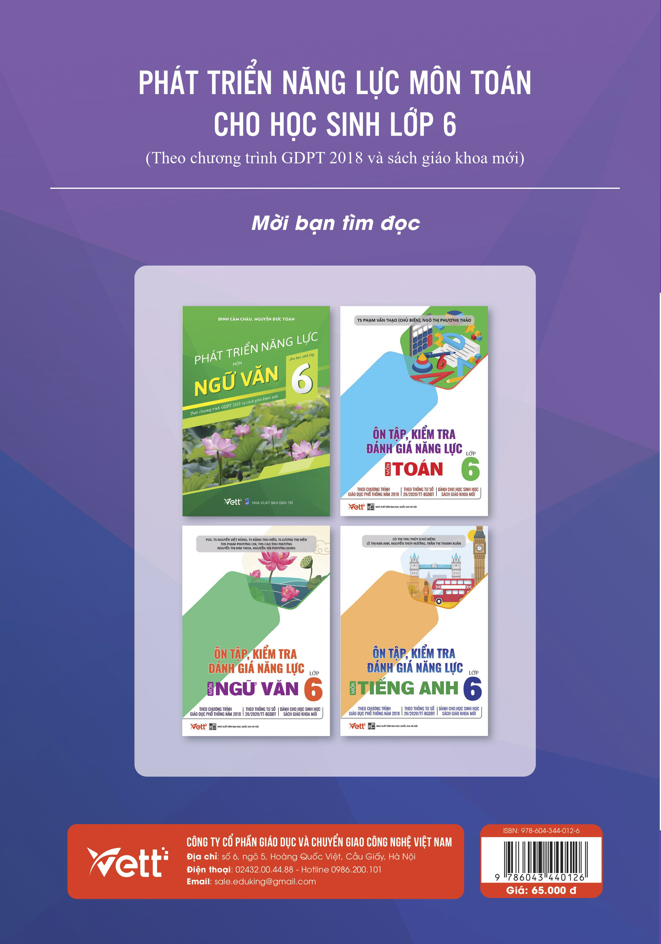 Cuốn sách Phát triển năng lực môn Toán cho học sinh lớp 6 được xây dựng theo hướng tăng cường, phát huy tính chủ động , tích cực, tự học của học sinh. Cuốn sách giúp học sinh rèn luyện phương pháp tự đọc, tự học, tự nghiên cứu trên nên tảng lý thuyết sách giáo khoa từ đó giúp học sinh giải quyết các nhiệm vụ học tập đặt ra trong từng mảng kiến thức từ cơ bản đến nâng cao. đồng thời đảm bảo thời gian học tập, thực hành, trình bày , thảo luận, sáng tạo của chính bản thân học sinh .