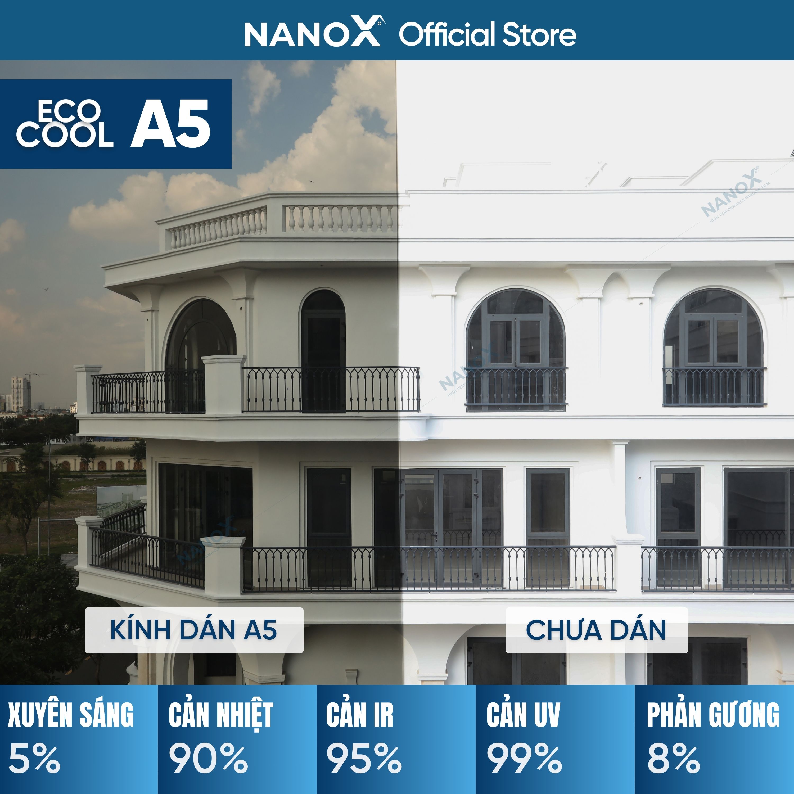 - Không bảo hành - *Vì không phải do đội ngũ NanoX thi công Thông số kỹ thuật NanoX Eco-Cool A5:
