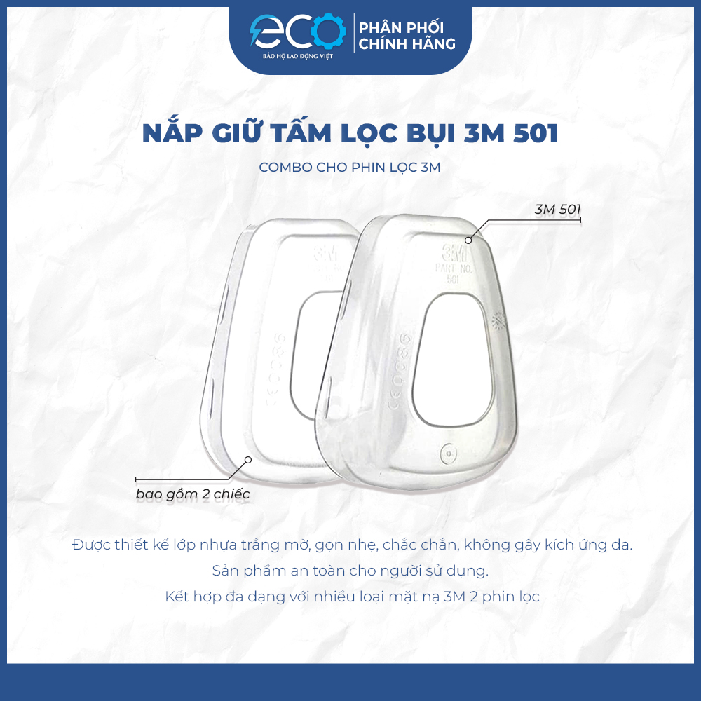 Tấm lọc bụi 3M 5N11 dùng kèm với nắp giữ 3M 501 chống được bụi và hơi sương trong môi trường làm việc có hơi hóa chất vô vơ và hữu cơ. ️ Thông tin