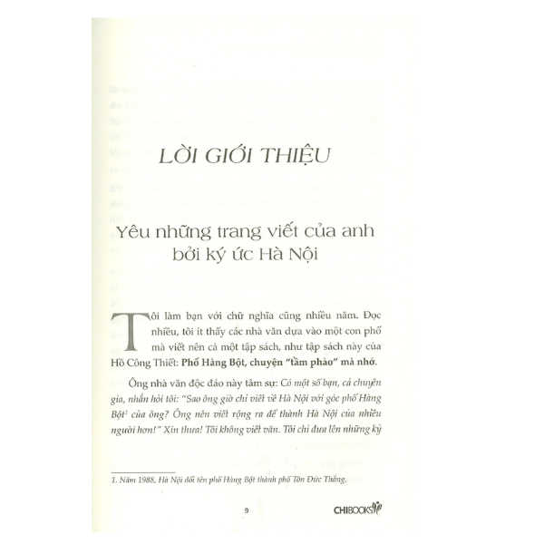 "...Tác giả Hồ Công Thiết gắn bó suốt từ tuổi thơ với Hàng Bột, yêu con phố ấy đến mê man từng nóc nhà, từng ngõ hẻm để viết nên tập sách này. Anh hiểu về Hà Nội rất chi tiết, kỹ càng, và viết ra cũng chi tiết, kỹ càng, cuốn hút, ăm ắp những điều ai cũng yêu thích, cũng tò mò mà chưa mấy người viết ra…" – Nhà văn Châu La Việt