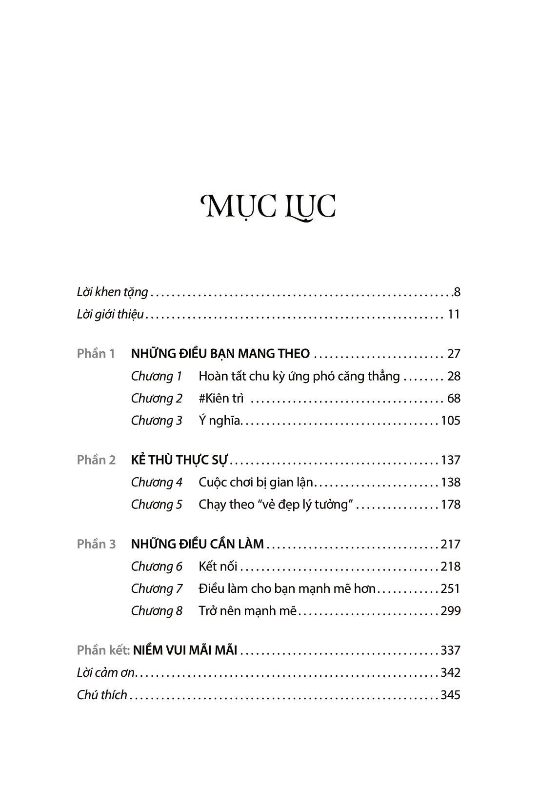 Phần đầu cuốn sách giải thích 3 nguồn nội lực mà chúng ta mang theo bên m.ình: chu kỳ ứng phó căng thẳng, “bộ kiểm tra” (cơ chế kiểm soát cảm xúc thất vọng của não) và ý nghĩa của cuộc sống.