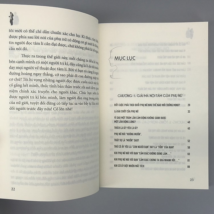 - Bị đối phương cho "dừng cuộc chơi" mà không biết tại sao? Có câu nói: Phụ nữ là tạo vật khó hiểu nhất thế gian. Nhưng thực sự là không cách nào có thể hiểu phụ nữ sao Cuốn sách này sẽ chỉ dẫn bạn thông tỏ những điều không thể không biết về phụ nữ. Thông qua kĩ thuật đọc tâm lí và biểu cảm, hành vi của phụ nữ trong tình yêu của tác giả, nếu bạn có thể thấu hiểu và nỗ lực rèn luyện thì nhất định sẽ lĩnh ngộ được rằng, lòng phụ nữ không phải là kim dưới đáy bể. Cuối cùng, bạn sẽ tìm ra chìa khóa mở cánh cửa bí ẩn tự cổ chí kim - rốt cuộc phụ nữ đang nghĩ điều gì?