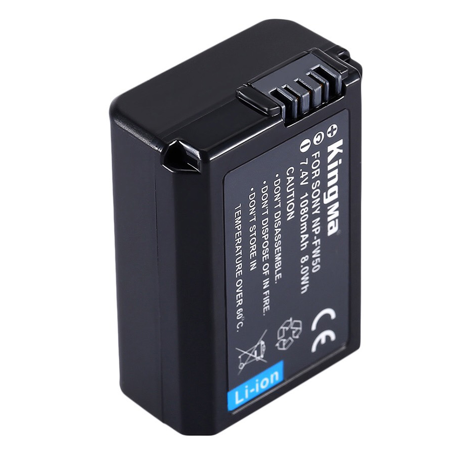 Pin máy ảnh Kingma cho Sony NP-FW50 Thông tin sản phẩm: Pin Kingma for Sony NP-FW50 -Model: NP-FW50; -Điện áp 7.4V; -Công suất: 1080mAh 8.0Wh; -Loại pin: Pin Li-ion; -Kích thước: 45 * 31,9 *